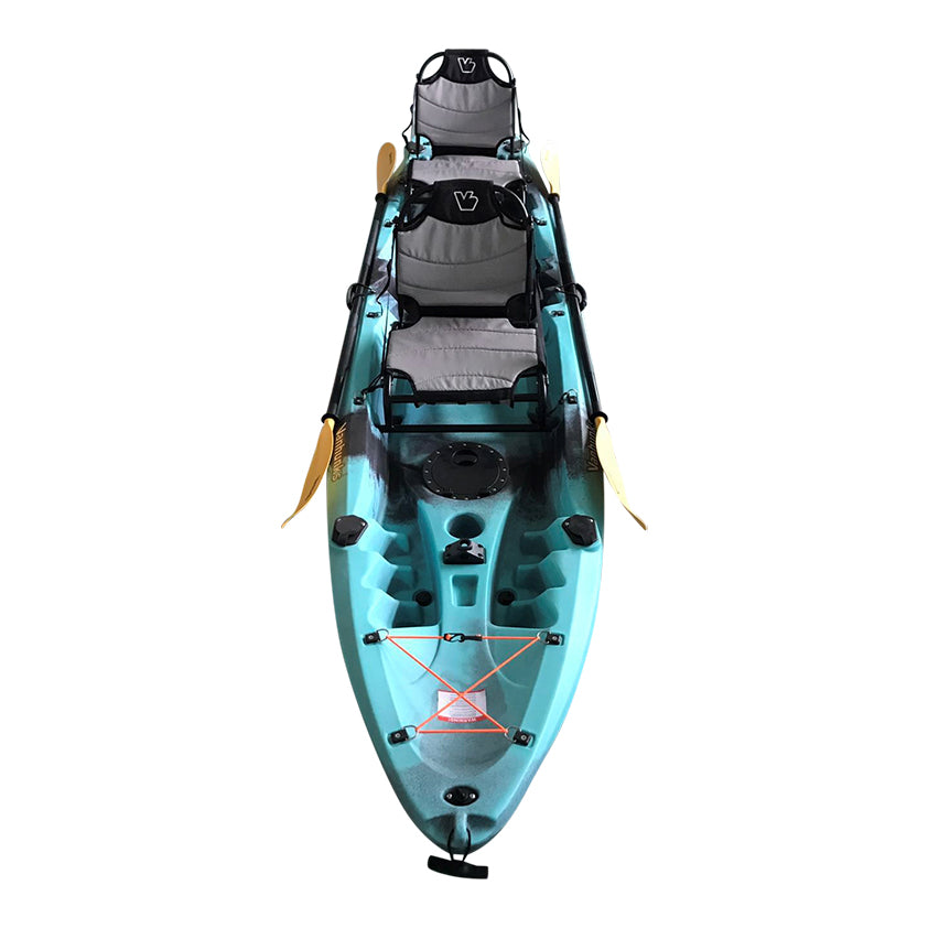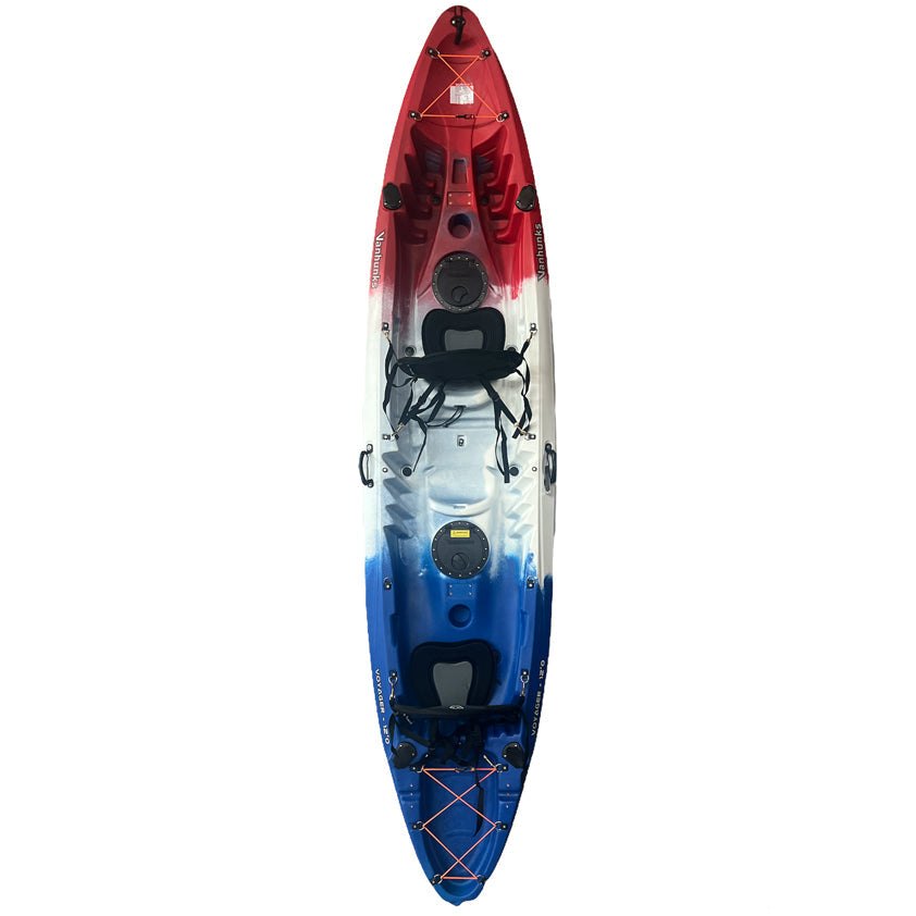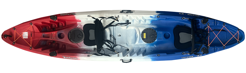 The Voyager Deluxe Tandem Family kayak is extremely stable and easy to paddle. Vanhunks’ voyager has been designed with comfort in mind. Whether you are one person or three, the Vanhunks Voyager Deluxe fishing or family kayak has ample space. The Voyager is designed with two deluxe aluminum adjustable seats on either end of the fully molded middle seat, which makes it perfect for a kid, pet, or extra baggage when touring.