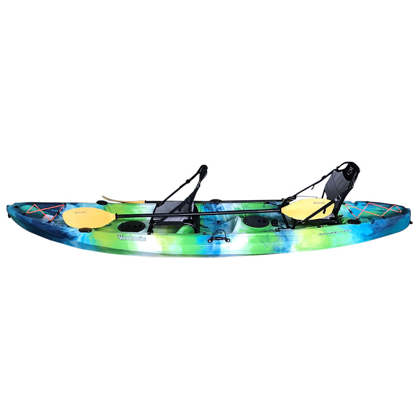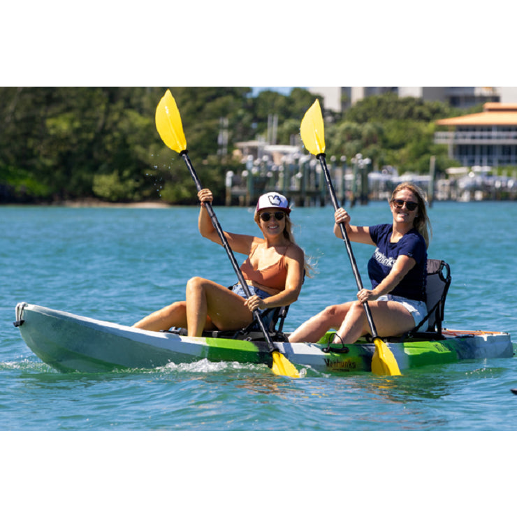 Vanhunks Boarding goes all-in with their range of rotomolded 5mm Polyethylene kayaks. No need to purchase extras with this package deal. They’ve given you everything you need to get you started with their Voyager Deluxe tandem sit-on-top fishing or family kayak.